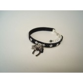 Bracelet galon noir avec étoiles argentées monté avec de l'onyx.