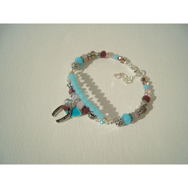 Bracelet pastel monté avec du verre et métal argenté sans nickel.