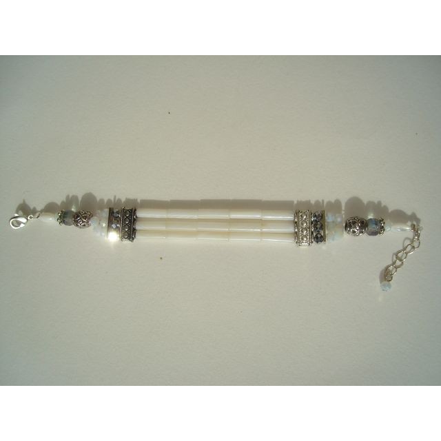 Bracelet nacre monté avec du verre, cristal et métal argenté sans nickel.