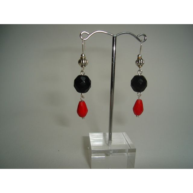 Boucles d'oreilles perles facetées montées avec du verre et métal argenté sans nickel.