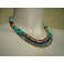 Collier 5 rangs monté avec de la nacre, howlite, céramique, verre, daim et métal argenté sans nickel.