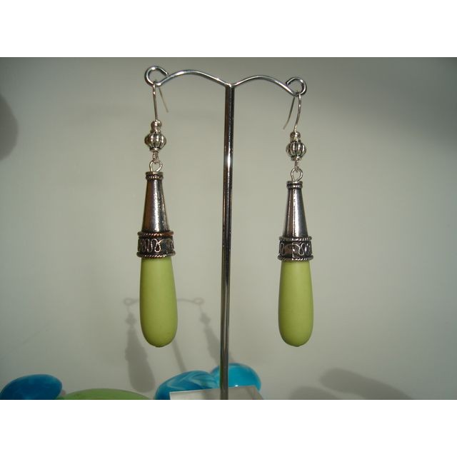 Boucles d'oreilles goutte résine montées avec du métal argenté sans nickel.