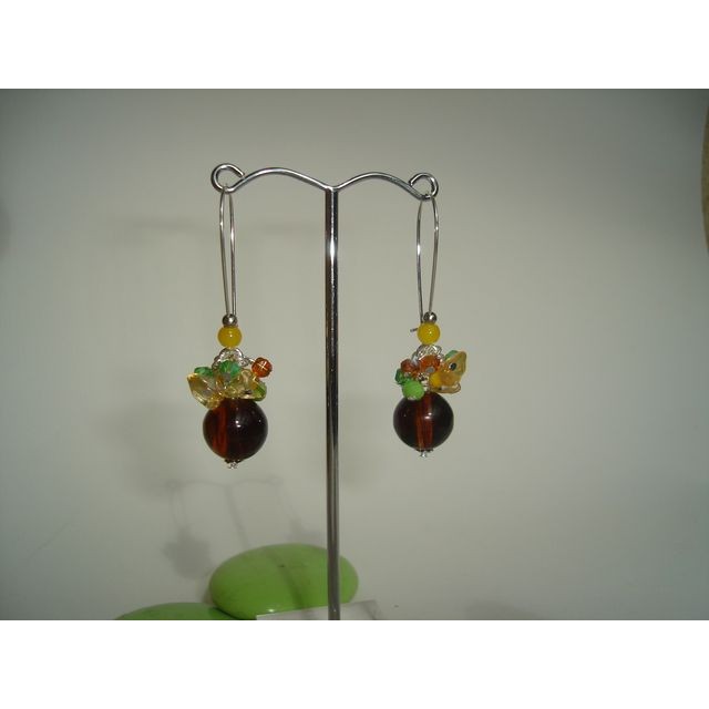 Boucles d'oreilles écaille grappe montées avec de la citrine, verre, cristal et métal argenté sans nickel.