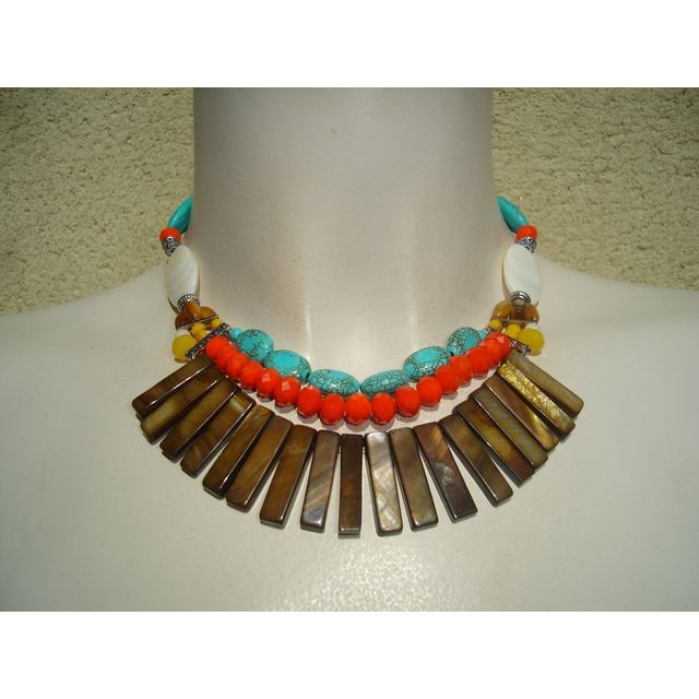 Collier nacre monté avec de la howlite, verre et métal argenté sans nickel.