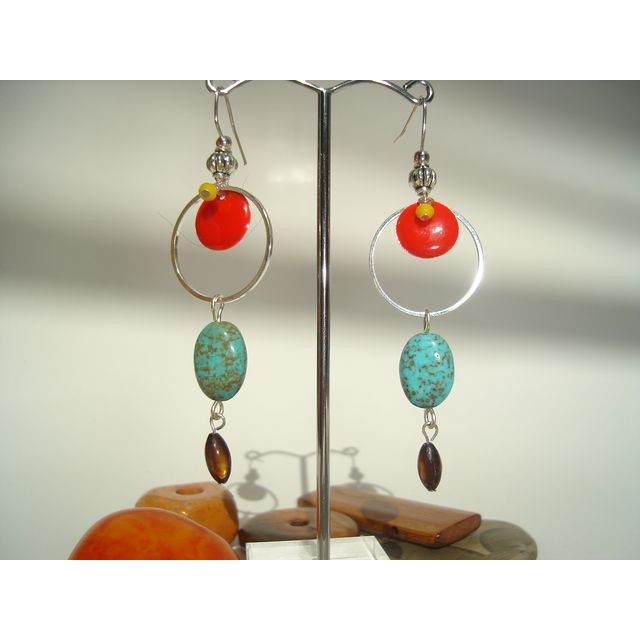 Boucles d'oreilles émail montées avec de la howlite, nacre et métal argenté sans nickel.